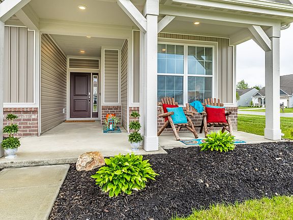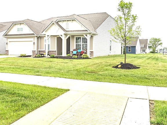 Just minutes from Hamilton Town Center, step into your new three-bedroom, two-and-a-half bath low maintenance home located on a corner lot! As you enter, you will be greeted with soaring 11 ft ceilings, creating a spacious and airy feel throughout the home. The modern kitchen is a chef's delight, offering both style and efficiency for your culinary adventures featuring a new refrigerator, gas stove and large island. Relax in your private master suite and find a luxurious bathroom with abundant closet space, a large shower and dual sinks. This home has covered porches on both the front and back of the home, perfect places to enjoy the outdoors, listen to the birds sing or visit with the neighbors! The extra large garage provides ample space for your vehicles and storage needs, ensuring convenience and functionality. This home has a builder's warranty, designer blinds, a stainless steel refrigerator, washer and dryer, invisible fence, security system, and a water softener making this home better than new! Come see this beautiful home and vibrant community !