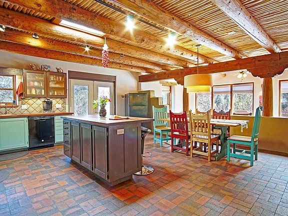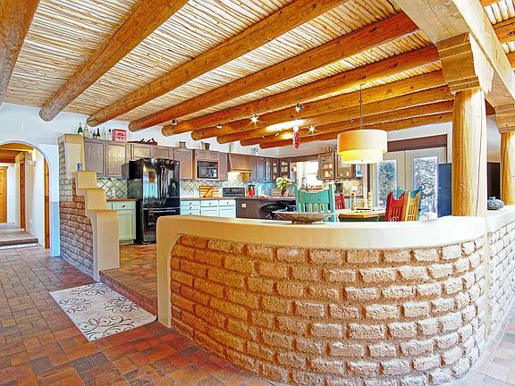 Well cared for, single level (one step), Pueblo style home nestled in the foothills and surrounded by pine trees and rock outcroppings. Home has had significant improvements (see attached list in documents) and is surrounded by mature landscaping, fruit trees, and has a spacious deck with a hot tub. The interior features 3 bedrooms and 2.5 bathrooms plus an office with custom built-in's. Enjoy the open floor plan with a large great room with adobe accent walls, brick floors, beam and cedar ceilings and a kiva fireplace. Brick and cork flooring throughout. The 1,046s.f. oversized 3 car garage has a heat and a/c split system, electric, and water is at the site so keep as a workshop or easily convert to a casita! Property is gated with a private well (3 ac feet of water). Come and enjoy the serenity and indoor-outdoor living with hiking, streams, views and stars!!!