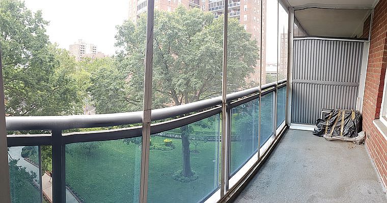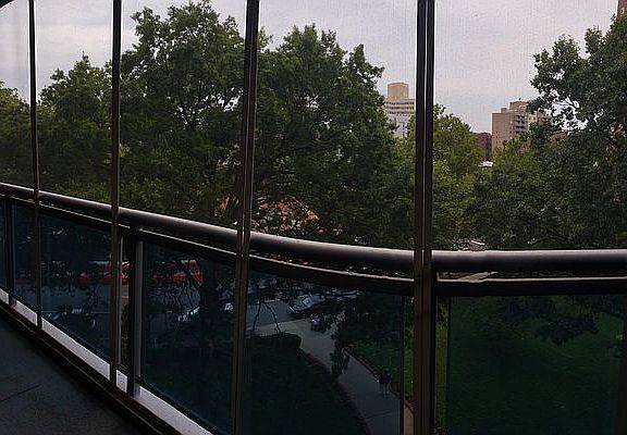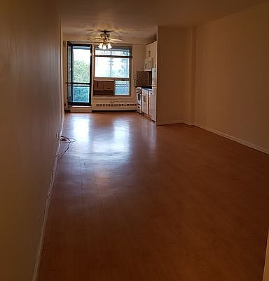 Huge Studio in a nice residential building with Huge Balcony and a very nice view. Big living room that has high ceilings and hardwood floors and huge window that brings lot of sunlight. Nice kitchen, Plenty of kitchen cabinet space. Separate dining area. 3 spacious closets. Renovated Bath. Utilities included except electric (extra $50 for summer months) Hardwood Floors. The building has 2 Elevators, Washer and Dryer in building. Block from M and R train. Very convenient location. Close to shopping centers, malls, pharmacy, grocery, supermarkets etc. Please No pets. income and credit will be verified. Needs Management approval Namaste :)