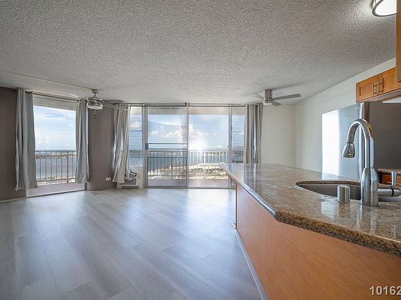 Nestled on a high floor, this beautifully maintained, move-in-ready residence offers breathtaking panoramic views stretching from Diamond Head to the Leeward Coast. The unit features tasteful updates, including new flooring and a newer refrigerator.