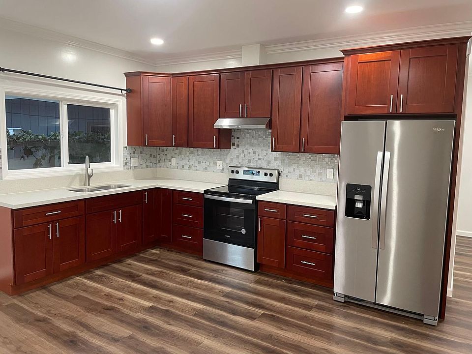 Newly constructed duplex in Aiea. 2 bedroom, 1bath covering 1200 square feet. Wood-plank flooring. Bathroom with granite counter tops and glass shower doors. Open kitchen with new-stainless steel appliances, granite counter and wood cabinets. 2 uncovered parking spaces available with additional street parking. Shared washer and dryer. Solar heating installed. LOCATION! 15 minute drive to military bases (Camp Smith, Ft. Shafter, Joint Base Hickam Pearl Harbor, Tripler Army Medical) and airport, Pali Momi hospital, Pearlridge Mall, schools, and bus stop, and access to freeway. Pet is case by case.