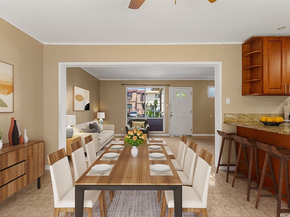 VA ASSUMABLE! NEW CARPET INSTALLED for the new homeowner! This Beautiful three bedroom, two FULL bathroom townhouse (tax records showed 1.5 baths) offers a modern finish, comfortable layout with a spacious design. Featuring sleek countertops, a full backsplash, and durable tile flooring on the ground level. Perfect for everyday living with a covered Lanai. SELLER also has a LOW RATE VA ASSUMABLE LOAN available! Conveniently located in central Oahu, this home is just a short distance from Pearl Harbor, shopping, dining, and more. Don't miss this opportunity – schedule a showing today and make this charming townhouse in Pearl City your new home! VA Assumption information: 5.125% Assumable Rate | PITI: $3,678.86 | Loan balance $598,741.07 | Servicer: Selene.