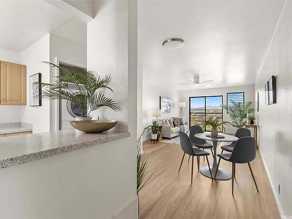 Welcome to Pearl Horizons, where modern design meets everyday convenience. This beautifully renovated 2-bedroom, 1-bath residence offers 794 sq ft of thoughtfully updated living space with classic & timeless finishes throughout. This residence also comes with two assigned parking stalls providing both convenience and practicality. Move-in ready, the home features a bright and open layout that feels fresh and inviting, highlighted by no popcorn ceilings for a clean, modern look. Enjoy the comfort of gentle cross breezes creating a light and airy atmosphere year-round while taking in the views of Pearl Harbor. Living at Pearl Horizons also means access to great community amenities, including a swimming pool and BBQ area - perfect for relaxing or spending time with friends. Conveniently located in the heart of Aiea just moments from Pearlridge Center, dining, schools, and freeway access. Whether you're a first-time homebuyer, investor or looking for a beautifully updated home in a prime location, this residence delivers the perfect blend of style, function and lifestyle convenience.