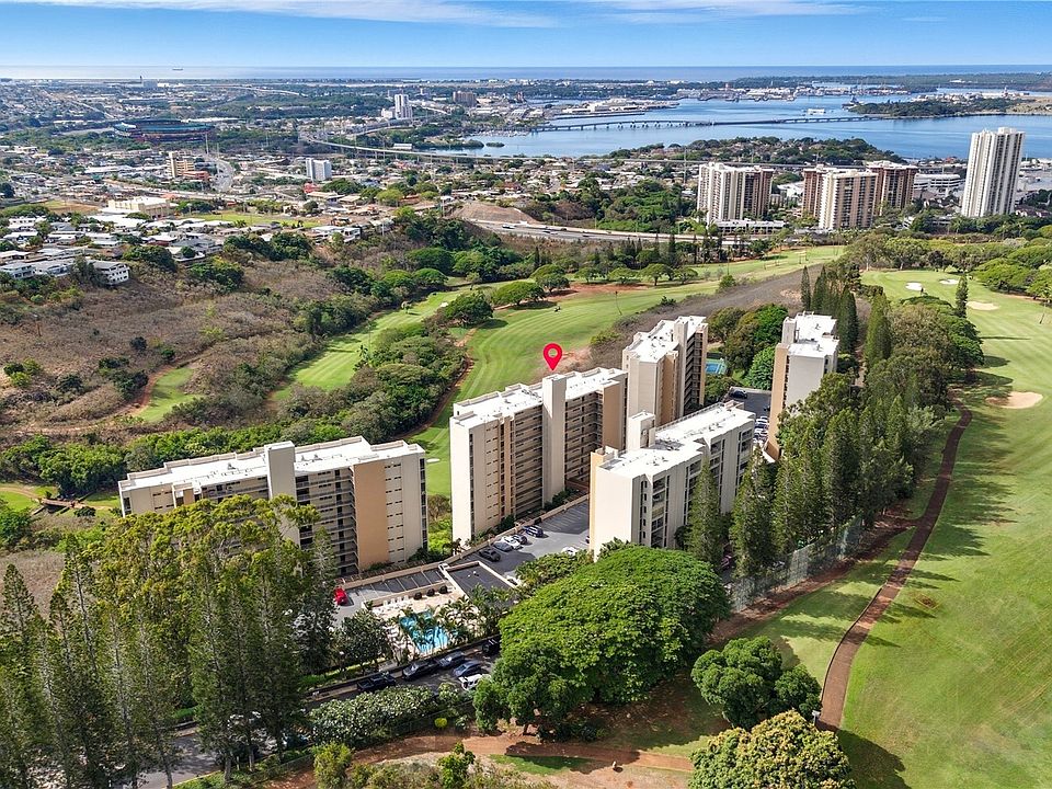 Welcome to Colonnade on the Greens! This 2-bedroom, 2-bath unit offers two parking stalls and beautiful city, coastline, mountain, ocean, and sunrise views from both the living room and lanai. Enjoy resort-style living with amenities that include a BBQ area, swimming pool, sauna, exercise room, 24-hour security guard, tennis and pickleball courts, and more! Conveniently located near shopping, dining, hospitals, military bases, and quick access to H-1.
