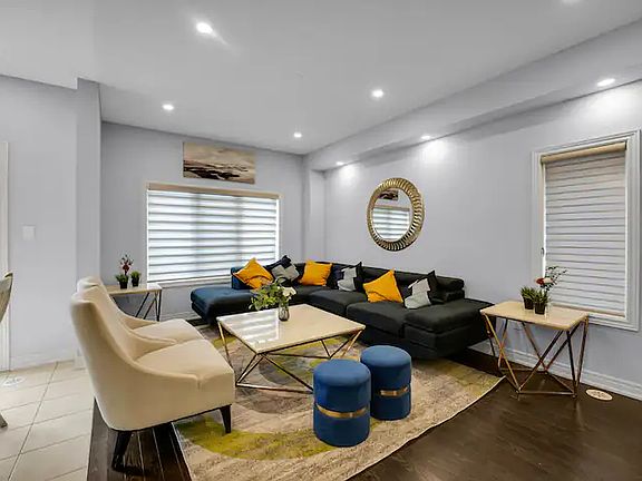 Fully furnished beautiful corner townhouse with 3 bedroom 2.5 bathroom with ravine lot situated in heart of Brampton . The house is fully equipped with high end appliances and bright pot lights . It is fully furnished with one King bed , 2 nightstands and dresser in one Bedroom. Queen bed and 2 nightstands in another bedroom. It also includes Living and dining room furniture .Main Floor Laundry along with an open concept layout. The intersection is Chinguacousy and Steeles. Radiance of Natural Daylight throughout this Spectacular Home. Tenant has to pay 70% of all the utilities which is water, hydro, gas and internet. Comes with one parking spot. Plus, the Convenience of an Indian Grocery Store, good rating schools , Brampton Bus terminal, Starbucks, and Amenities Within Walking Distance is ideal for a family. Available February 1st. Please reach out if you're interested . No smoking allowed. Renter pays 70% of electricity , gas and water.