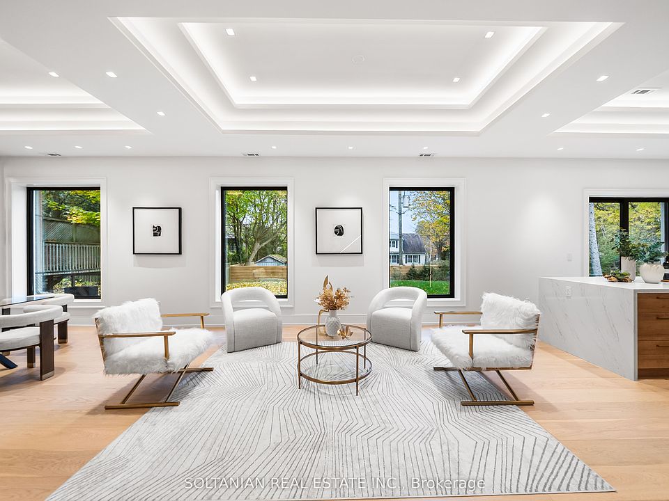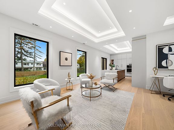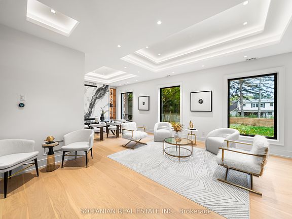 Unbeliavble opportunity! This new custom-built masterpiece on a premium 60 ft lot in 1 of the area's most desirable neighborhoods. Unimagineable value for quality and craftsmanship.Extraordinary residence blends modern architecture, elegant design offering a lifestyle of comfort and sophistication. Every inch of this home has been thoughtfully curated for those who appreciate fine living and contemporary elegance. Step inside to a breathtaking main level featuring 11ft ceilings, intricate coffered details, and halogen lighting that creates an airy, inviting atmosphere.The great room is the showpiece boasting a striking slab fireplace wall, custom entertainment area, and oversized picture windows with tranquil treetop views.The chef-inspired kitchen is both functional and stunning, complete with an oversized waterfall island, stone countertops, top-of-the-line stainless steel appliances, and a seamless flow to the dining and family areas ideal for gatherings large or small. The custom glass staircase railing, imported porcelain finishes, and designer lighting add timeless appeal throughout Upstairs, discover 4 spacious bedrooms, each with custom closets and refined finishes.The primary suite is a serene retreat with a sculpted accent wall, tray ceiling, and a 7pc spa-inspired ensuite featuring floor-to-ceiling porcelain, gold fixtures, and a body-spray shower system for the ultimate in relaxation. The fully finished lower level offers a wet bar with beverage fridge & a stone countertop w breakfast bar, perfect for entertaining or extended family. 5th bedroom and full designer washroom complete this space. Additional highlights include a video camera doorbell, designer lighting & countless custom upgrades. Step into your own private oasis a spacious, park-like backyard surrounded by mature trees, offering both privacy and serenity. A true showpiece experience the beauty, quality, and luxury, Don't miss the chance to own a stunning property like this in todays market!
