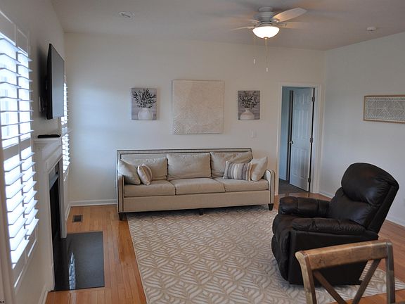 Welcome to Parkview Village, where convenience and community meet. This stunning duplex offers an ideal layout with the primary suite and laundry conveniently located on the main floor. The home features a total of three bedrooms, 3.5 baths, and elegant 9-foot ceilings throughout. The kitchen is a chef's delight, boasting granite countertops, a stainless steel refrigerator, and Whirlpool appliances. Most rooms are adorned with hardwood floors and plantation shutters, adding a touch of classic charm. The finished basement provides versatile living space with a large open floor plan, a wet bar perfect for entertaining, a full bathroom, and exterior access. The basement-level office could also serve as an extra bedroom. Enjoy outdoor living on the covered front porch or the back deck, complete with a remote-controlled SunSetter awning. A two-car garage with newly epoxy floor completes this must-see home. Schedule your tour today! Seller will provide a Home Warranty with accpetable offer.