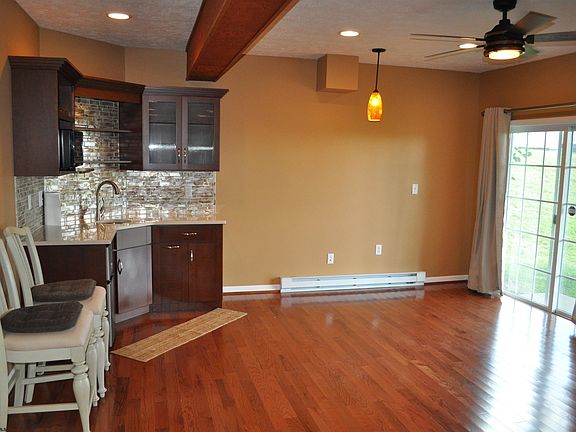 Finished basementWet barTwo-car garageStainless steel refrigeratorBack deckCovered front porchPlantation shutters