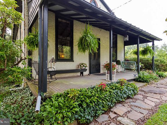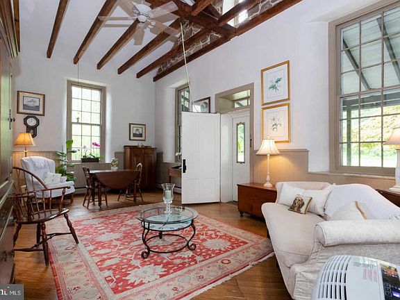 Every home has a story to tell but the treasured and preserved School House (c. 1868) converted into a comfortable and light drenched home is sure to be your favorite. The front stone walk with lovely perennials and shady dogwood tree takes you to the front sitting porch. Perfect to sit and enjoy morning coffee, take a moment here to imagine the history that once was and the memories you can make here! The door, the original school house bell and belfry, the preserved architecture all add texture to this beautifully maintained property. Step inside and your eyes will immediately be drawn up and around in the main gathering room. All of the original schoolhouse elements are found here in the heart of the property including wood beamed ceiling, brick wood burning hearth, pine plank flooring, and exposed stone wall, all have been preserved and remain including the rope for the school house bell. Light floods the area from both directions with the 9x9 windows and lofty ceilings. Step into the story book kitchen where newer appliances meet antique heart pine counters, a farmhouse sink and cabinetry, and a dutch door that takes you to a serene stone terrace. Life slows down outside on the stone terrace with beautiful views of the nearby equestrian farm, established perennials, and the lovely backyard. Back inside is a first level bedroom with beadboard ceiling, original hardwood floors, and a 9x9 window framed by curved corners. Every important detail of this property has been kept and incorporated. Just outside the bedroom is the first floor bath with tumble tiled shower, pedestal sink, and storage. Tucked under the stairs find the laundry and desk area with beautiful touches of charm throughout. Upstairs find the master bedroom suite with Stone walls, exposed beams from the living room below, closets, storage, skylights, a dressing area, and an ensuite bath. Make your appointment to see this property in person and experience for yourself all the former East Vincent School House has to offer.