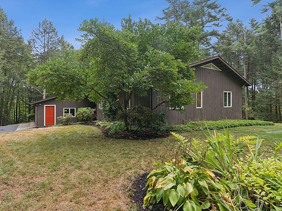 Built by the renowned Woodward Thomsen Co., this beautifully cared-for modern ranch offers the perfect balance of timeless style, thoughtful design, and serene natural surroundings. Tucked away on a private 2.8-acre lot situated in a desirable Falmouth location, the property grounds are accented by lush perennial gardens and peaceful wooded views - creating a relaxing escape just minutes from all downtown amenities. Step onto the covered porch and into a welcoming foyer that sets the tone for this home's warm and inviting interior. Just off the entry, a hallway leads to a stylish half bath and a gourmet kitchen featuring stainless steel appliances, granite countertops, a center island with butcherblock top, and a peninsula with bar seating. The kitchen flows seamlessly into the family room, where a fireplace with woodstove insert adds to the home's wealth of character. Turning the corner, a formal dining area overlooks a spacious deck and the wooded backyard — perfect for entertaining or quiet evenings outdoors. The living room is centered around a classic wood-burning fireplace and bathed in natural light. Down the hall, you'll find three generously sized bedrooms, including a primary suite with a walk-in closet and a full bath with a custom-tiled shower. A second full bath services bedroom two and three with ease. The walk-out basement expands your living space with two bonus rooms ideal for a home office, gym, or guest space - plus a workshop area with ample storage. Additional storage is available above the attached two-car garage, offering practical convenience without sacrificing style. This is a rare opportunity to own a home that combines exceptional craftsmanship, modern comfort, and natural beauty — all in one of Falmouth's most sought-after locations.