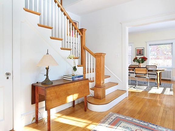 This elegant 1920 center-entrance Colonial Revival is in the Crowninshield Historic District. The first floor features a gracious foyer, a front-to-back living room with a fireplace, and a lovely sun room. There is a dining room with two china cabinets and a well equipped eat-in kitchen with gas cooking and two ovens. An atrium-style room, with a wall of glass, connects the kitchen to the living room, and opens to an oversized porch overlooking the magnificent flat yard, landscaped to provide privacy. There is a laundry room/pantry and a half bathroom on the main level. The second floor features a generously-sized master bedroom with a bathroom and two bedrooms both with en-suite bathrooms. The house has a second staircase connecting the two floors and ample closets. This sun-filled home features wood floors, tall ceilings, and pretty, large windows. Amenities include central air-conditioning, a sprinkler system, and a detached two-car garage. Near Coolidge Corner, T, and shops.