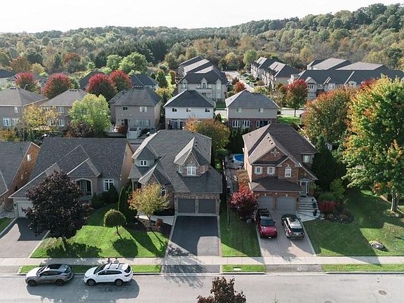 Impressive Executive Home in the Heart of Dundas Valley. With over 4,100 sq ft of beautifully finished living space, this stunning detached home is nestled on a mature, landscaped lot with outstanding curb appeal, just steps to the Bruce Trail, Dundas Conservation Area, and the Dundas Valley Golf & Curling Club. From the custom front door to the elegant staircase, the foyer sets the tone for the main floor, which includes a cozy, sunlit living room, formal dining space, and a private office perfect for working from home. The family room is a true showstopper with soaring ceilings and expansive windows overlooking the private backyard. The beautifully upgraded eat-in kitchen offers direct access to the backyard, perfect for everyday living and entertaining. The oversized primary retreat boasts a 5-piece ensuite, his and hers walk-in closets, and a comfortable sitting area. The second bedroom includes its own ensuite, while the 3rd and 4th bedrooms share a Jack & Jill. The finished lower level comes with a large rec room, 5th bedroom, 2nd office, plus room to expand. Say goodbye to car shuffling with a double garage and spacious 4-car driveway. Truly a rare find in a sought-after Dundas location!