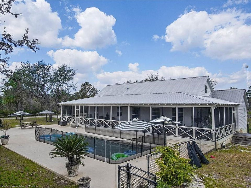 THIS HOME & PROPERTY BOASTS PRIVACY AND TRANQUILITY. AFTER COMING DOWN THE PRIVATE DRIVEWAY, YOU ARE GREETED WITH A BEAUTIFUL VIEW OF THE 34X79 GUNITE, SALT WATER POOL & SCREENED WRAP-AROUND PORCH! This home is hidden from view from the street by leaving the natural beauty of the land. Once inside the home you will find the sought after OPEN FLOOR PLAN WITH GREAT USE OF SPACE! There is plenty of "natural light" coming through the tall windows with impact glass that adorn the home! Walk into the Formal Dining Room where you are greeted with gorgeous Hawaiian wood flooring throughout the entire home! The kitchen has ample cabinetry, open shelves, a breakfast bar, a coffee bar, and open to the Living area. There are two bedrooms separated by a full bathroom just off the hallway where there is a stack washer & dryer in a large closet. The mater en suite is spacious and has a large walk in closet. The master bathroom has an exterior door for easy pool access. If you need extra storage space you will find it in this finished 400 +/- sf insulated, heated & cooled attic that could have many other uses. Also located on the beautiful, well landscaped grounds is a 12x12 Gazabo between the pool and the 24x40 (extra tall for motor homes/RVs) metal building with double doors that will house 4 cars and its own source of electricity & water. THIS PROPERTY IS 4 ACRES MADE UP OF 4 ONE ACRE LOTS! OTHER ATTRIBUTES TO THIS BEAUTIFUL PROPERTY ARE: 8 FT TALL SOLID DOORS, EXTRA TALL HURRICANE WINDOWS, FIRE PIT FOR COOL EVENINGS, TREE-PLAY HOUSE, GATED COMMUNITY WITH PAVED ROADS, COMMUNITY LAKE REEDY ACCESS WITH USE OF A DOCK, BACKS UP TO ARBUCKLE STATE PARK (NO NEIGHBORS BEHIND YOU!), PROPERTY MOSTLY CLEARED, FENCING & CROSS-FENCING, CLOSE TO ARBUCKLE CAMPGROUNDS WITH A PUBLIC BOAT RAMP & HIKING TRAILS IN ARBUCKLE STATE PARK, NEAR WALK-IN-WATER LAKE WITH PUBLIC BOAT RAMP, AND CLINCH LAKE WITH PUBLIC BOAT RAMP, ABOUT 1.5 HOURS TO THE ATLANTIC OCEAN, GULF OF MEXICO, 2 INTERNATIONAL AIRPORTS, ORLANDO & TAMPA TOURIST ATTRACTIONS/ENTERTAINMENT/FOOTBALL STADIUMS, AND WITHIN A 10 MILES RADIUS "MANY GOLF COURSES!" THIS COULD BE YOUR NEXT FOREVER HOME! AS A BUYER, YOU HAVE AN OPTION TO PURCHASE TWO ADDITIONAL LOTS (2 ACRES) THAT ADJOIN THIS PROPERTY.