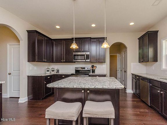 Fantastic location directly across the street from N. Topsail Elementary School. As you enter into the home you are drawn in by the coastal design, accented with 9 ft. ceilings, craftsman wood detailing, cozy fireplace, site lines from room to room, tons of natural light, arched doorways & the perfect floorplan with brand new LVP flooring throughout the home except the bedrooms. The kitchen has plenty of cabinetry, granite countertops, stainless appliances, large island with seating, stunning backsplash, & a large pantry. As you go upstairs you will find 3 wonderfully sized bedrooms, 2nd floor laundry, and the master suite! The master suite provides you a private getaway with a walk in closet and on-suite bathroom. There is a very large fenced yard, and the home sits on a cul de sac. Minutes from Kiwanis Park, boat ramp, groceries and shopping. Only a short drive to the beaches of Topsail Island!