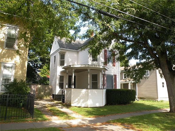 This home has lots of character and potential to reside in, or to utilize as an investment opportunity. It has a nice flow and light. Charming front porch had roof and support pillar replacement. Some newer installed windows; nice sized rooms. First floor has a great room, closet, living room, formal dining room and kitchen that includes an island, dishwasher, microwave, gas range, and large, double-door refrigerator/freezer. and lots of cupboard space. The kitchen door egresses to a side porch/deck. Three bedrooms, 2 large closets and good sized bathroom are are located on the second floor. There are several ceiling fans included. Washer and dryer hook-ups are in the solid concrete floor basement. Call soon to schedule a Showing!