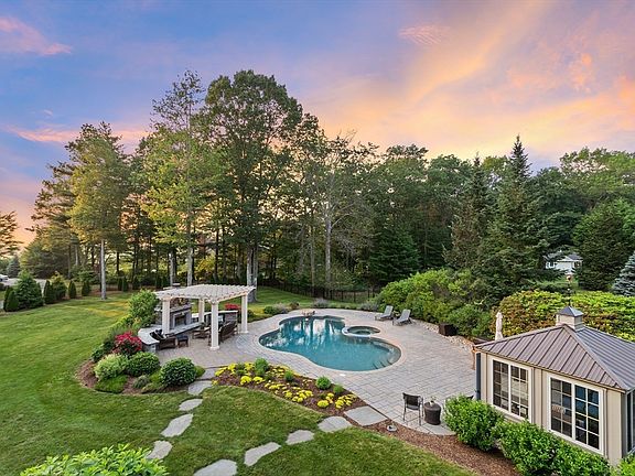 Nestled in the coveted Fox Run neighborhood, this exceptional luxury estate offers a rare blend of elegance, privacy, & resort-style living. Thoughtfully sited to capture distant mountain views, the property features a spectacular backyard oasis complete w/salt water pool & hot tub, pool house, expansive patio w/fireplace, tranquil water feature & manicured grounds. Inside, the home boasts refined finishes, soaring ceilings, & a seamless flow of sun-drenched living spaces. The gourmet kitchen is a chef's dream, featuring an expansive island, notable appliances & beverage center & seamlessly flows to an adjoining dining area, family room w/fireplace & cheerful sunroom. Relax & unwind in the serene & luxurious 1st floor primary suite overlooking the private backyard oasis. The 2nd level offers 3 generous bedrooms, full bath & convenient home office. A finished lower level w/separate entrance & full bath offers additional versatile living spaces. Enjoy not just a home, but a lifestyle!