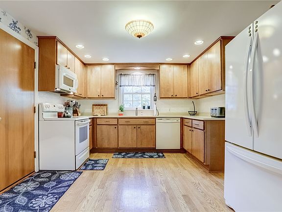 Wonderful Pittsford Ranch situated on a private & serene setting, yet moments from all conveniences. Hardwood floors & built-ins add to the charm of this 3 bedroom home. Enjoy a quiet meal in your eat-in Kitchen with quartz counters, or host larger gatherings in the formal Dining room with a built-in hutch. Relax by the fire in your generous Living room, while overlooking your fully fenced, tree-lined backyard. The sun room(included in sq footage) offers a relaxing place to work or play, with access to the patio. The 2 car garage leads to the full basement, which would be ideal for finishing. Tear-off roof: 2011; Thermopane & glass block windows: 2017. All appliances included. Backs to Nazareth University campus grounds. Square footage includes approximately 300 sq feet in sunroom. Sunroom has ductwork for forced air furnace, just need to add a new furnace. Seller never found a need to add the heat. He used a portable heater on very cold days.