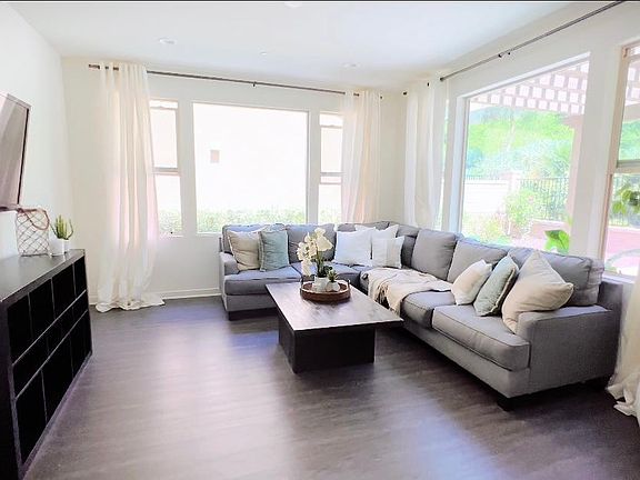 This Gorgeous offers 3 bedrooms, 2 full bathrooms, and 1 half bathroom. There is an open layout, the space perfectly flows from a pretty living area to a well-stocked kitchen that flows naturally to the backyard. the Upgraded Wood Look Flooring runs throughout the entire first floor and leads you to the spacious and Open Concept Great Room. The master and secondary bedrooms are separated by a loft, providing extreme privacy. The attached 2 Car Garage and Half Bath round out the first floor. Upstairs you will find all 3 Spacious Bedrooms, 2 Bathrooms, and the Convenient Upstairs Laundry Room. The Elegant and Open Primary Suite is Light and Bright with Relaxing Greenbelt Views from every window and Upgraded Wood Look Flooring. The Spa Like Relaxing Primary Bathroom features a Spacious Walk In Closet, Dual Vanities, Beautiful White Cabinets, Designer Tile Flooring and Walk-In Glass Shower. Baker Ranch offers top-of-the-line amenities including 3 Swimming Pools, 8 Parks, Hiking and Biking Trails, Tennis Courts, Beach Volleyball, Basketball Courts, Dog Park, Clubhouse, and More.