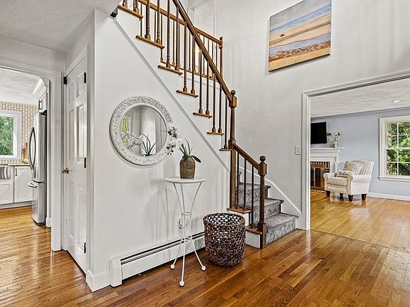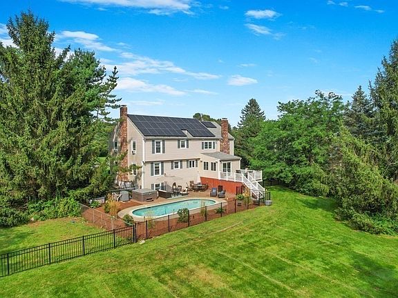 Discover this beautiful colonial nestled in a highly desirable cul-de-sac neighborhood. This property boasts a sprawling, level yard, perfect for outdoor enjoyment, and features an inground Gunite pool for endless relaxation & recreation. Upon entering is the formal living room, complete w/a cozy wood-burning fireplace & barn doors that reveal a spacious office. The dining rm seamlessly connects to the stylish kitchen, featuring hardwood flrs, center island, SS appliances, a beautiful tiled backsplash & hood above gas stove. Connected to the kitchen, you'll find a modern four-season porch. This inviting space is thoughtfully designed w custom built-ins, radiant flooring, & a convenient bev fridge, offering the perfect retreat for relaxation & year-round enjoyment. The cozy family room is open to kitchen w fireplace/built-ins. 2nd flr hosts 4 bedrooms one being primary ensuite w high ceilings, lrg walk-in closet & brand new remodeled bathroom. Perfect layout, house, lot, & location!