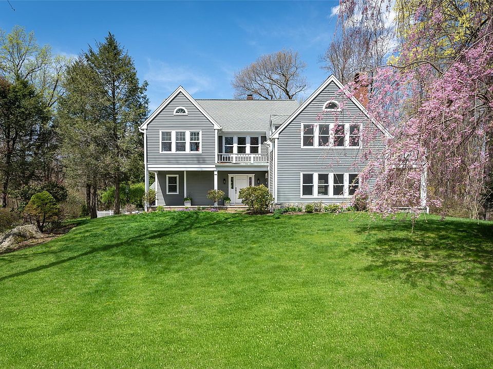 The perfect blend of traditional colonial details with an open flow farmhouse style. The 2-acre flat useable lot sets the tone for graceful country living. Surrounded by stone walls, mature growth trees, specimen plantings, relaxing koi pond garden & a woodland fitness trail. The large front covered porch entry opens into a two-story height foyer with views through the dining room to windows showcasing the back of the property. The step-down living room has custom built in bookcases surrounding the two-sided fireplace, walls of windows provide sunlight throughout the day. This generously sized living room seamlessly opens to a chef's eat in kitchen with new stainless-steel appliances, and a large stone countertop. New sliders make for ease of outdoor dining. Space for multiple seating & lounging on the expensive private rear deck. There is a first-floor office, a cozy den & full bath. The primary suite is positioned on one side of the second floor. With walls of windows, high ceiling incorporating architectural beams & a walk in closet. The marble shower, custom cabinetry and stone counter provide a spa-like feel. The additional 3 large bedrooms on the opposite side of the open hallway share a hall full bath. Each filled with natural light from double exposures & one with custom built in bookcases surrounding the window reading seat. One bedroom currently functions as a home office and fitness space. The lower level has a half bath, mud room, laundry, storage and access out to a detached garage & shed. The 3 bay garage can store 5 cars, large equipment, and room for workshop & storage. The large shed is attached to the rear of the garage. Full house generator. Rounding out this home’s relaxed, yet elegant entertainer's lifestyle you will entertain guests to grilling using the outside fireplace with built-in oven & grill on the covered stone patio overlooking rolling lawns. Perfectly Pound Ridge. Reduction for 2026 assessment/taxes already in place.