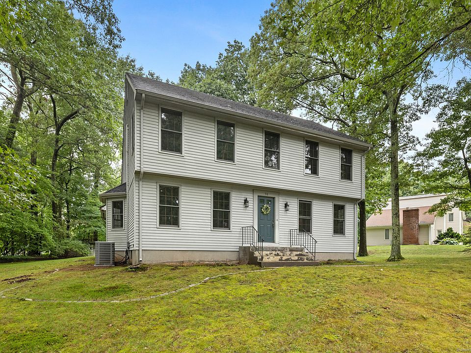PHENOMENAL LOCATION for this sprawling and charming home that offers a comfortable and convenient lifestyle with 5 bedrooms and 3 full bathrooms. Highlights of the property include brand new $14,000 c/air in July 2024, a spacious eat in kitchen and a private yard. The majority of the home features beautiful hardwood floors. A traditional wood burning stone fireplace serves as a focal point in the large living room, creating a cozy and inviting atmosphere. There is a first floor bedroom that can also serve as a home office, with attached full bath for guests with extended stays. On the upper level, the primary bedroom is an impressive size, has a full bath, and a spacious walk-in closet. Three additional bedrooms, a full bath and laundry room complete the 2nd floor. Fully finished lower level for games and guests! Newer garage doors. Irrigation in place, but has not been used for awhile. The home is in a low-traffic neighborhood. The lot spans an impressive .7 acres, providing ample room for expansion, a pool, or any other outdoor additions you desire. The possibilities are only limited by your imagination. The location of this home is exceptionally convenient, with easy access to amenities such as Costco, the new Whole Foods Market, town parks, the Shoppes at Evergreen Walk, and interstates 84 & 91. Just 5 minutes to the highway.