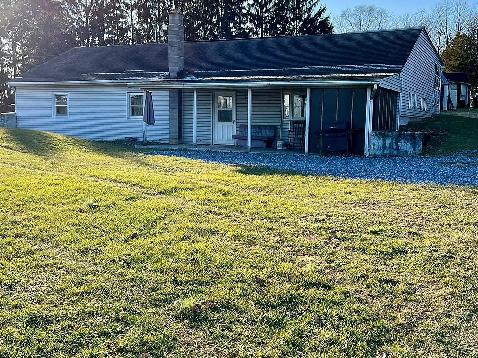 Estate Sale - AS - IS. This is a great starter home in need of major upgrades. When built it was engineered to add 2nd level. (Steel beam down the center with floor joist). Private setting on almost 1-1/4 acres at end of a dead end road culdesac. Rear of home is under ground making it easy to heat with wood stove alone, or oil hot air furnace. Cords of firewood and all appliances stay, except the chest freezer. Central air. Purchase and add the 2nd floor to double the living space! Priced according to condition. Wood stove and appliances stay. Property is listed at recent appraised value.