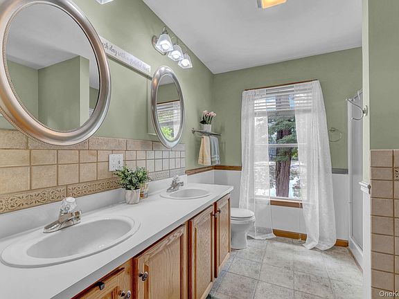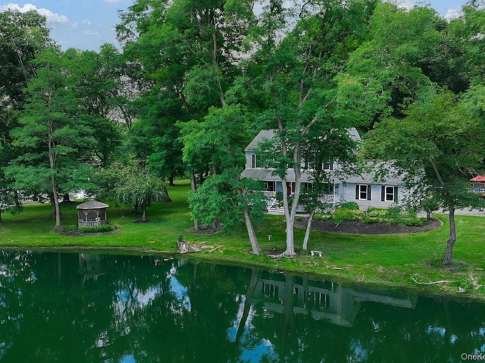Live in resort-style luxury year-round in this exceptional 3,500 sq ft waterfront residence tucked away on 1.2 private acres in the heart of Red Hook, NY. Designed for comfort, elegance, and versatility, this lives-like-5-bedroom (legal 4), 3.5-bath home feels like your own private retreat. With direct access to the serene Mill Road Pond, you'll enjoy kayaking, paddle boarding, birdwatching, or simply unwinding by the water—all just steps from your front porch. Inside, the thoughtfully designed layout includes sunlit living areas, hardwood and ceramic tile flooring throughout, and a gourmet kitchen outfitted with custom cabinetry, granite countertops, and top-of-the-line stainless steel appliances. Perfect for both entertaining and daily living, the main level offers a semi-open concept with a huge living room, eat-in kitchen, breakfast table area, and a half bath. Adjacent is an office or potential first-floor bedroom, and a large formal dining area just off the kitchen. Upstairs, you’ll find four spacious bedrooms, including a luxurious primary suite with a large walk-in closet, jacuzzi-style soaking tub, double vanity, and separate shower. There’s also a conveniently located laundry area and a full hallway bathroom to serve the remaining bedrooms. The finished basement features a private entrance, full bath, additional den, and a huge family room—perfect for guests, in-laws, or recreation space. Outdoor living shines with a covered rocking chair front porch and a generous rear entertaining deck overlooking the water. A two-car garage, whole-house automatic generator, and close proximity to Red Hook Village's charming shops and restaurants add even more value. This is Hudson Valley waterfront living at its finest—where privacy, luxury, and natural beauty blend seamlessly into the ultimate escape.