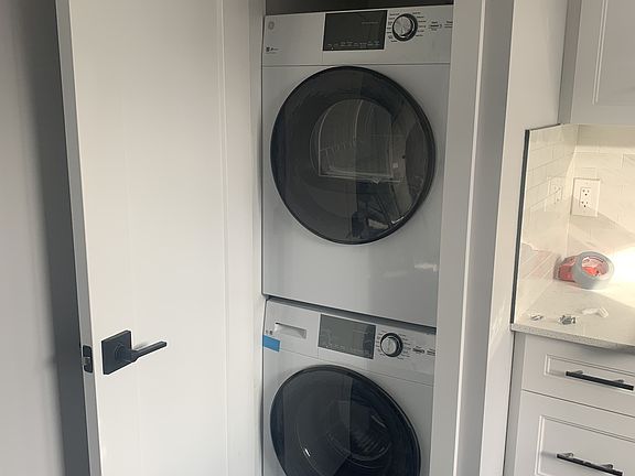 Private entranceModern kitchenQuartz countertopsMatching backsplashStainless steel appliancesIn-suite stacked laundryAbundant natural light