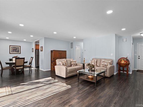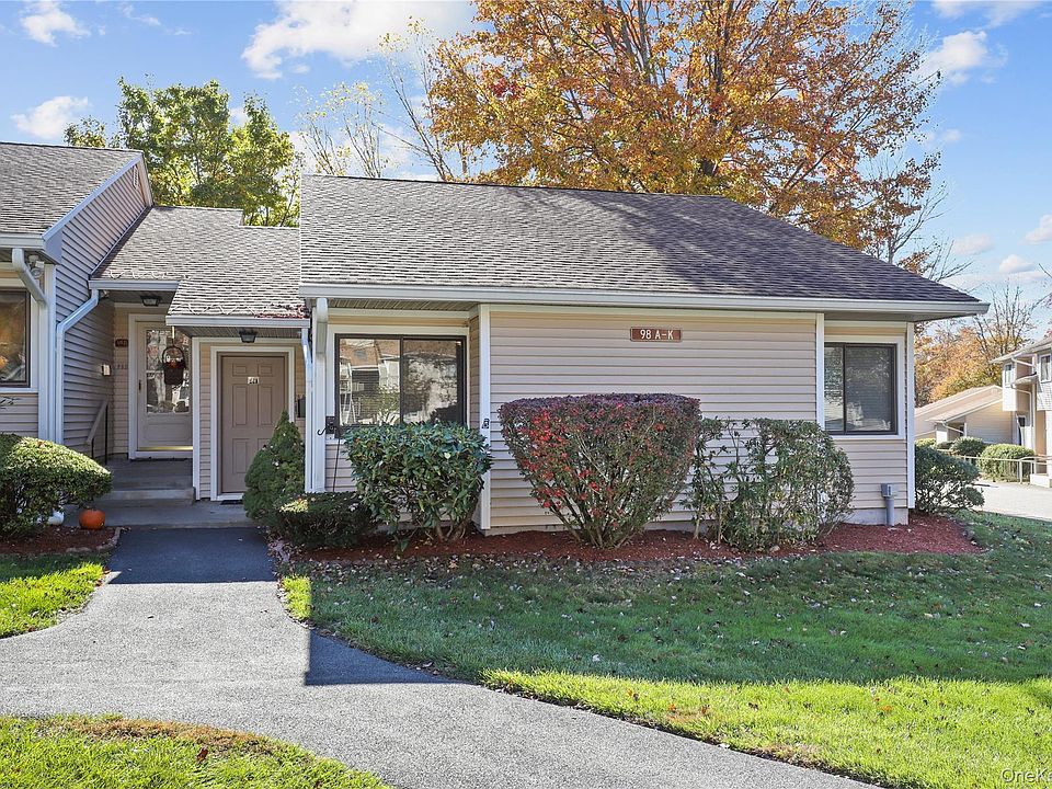 This beautifully renovated Bradford model offers one-level living at its best in Jefferson Village, a sought-after 55+ age-oriented community. Located on a cul-de-sac, this impeccable home offers everything you could ask for in comfortable and easy living. This desirable one-level end unit has no stairs and no one living above or below. Step inside to a spacious living and dining area showcasing luxury vinyl flooring, recessed lighting, and a sliding glass door that opens to your own patio with awning. The updated kitchen is appointed by newer cabinetry, granite countertops and stainless-steel appliances that have been rarely used. The primary ensuite offers double closets, new vinyl flooring and a beautifully remodeled bath. The adjoining second bedroom also features new flooring and convenient pull-down stairs to the attic. A renovated hall bath is completed by the in-unit washer and dryer for added ease. Additional highlights include a detached one-car garage just steps away, and a brand-new (2025) central air conditioner and air handler. Monthly common charges include oil heat, hot water, and basic cable, along with year-round exterior maintenance. Residents of Jefferson Village enjoy a vibrant lifestyle with a clubhouse offering year-round social activities plus a fitness center, library, billiard/dart room and arts and craft room. Outdoor amenities include an outdoor community pool, tennis and pickleball courts, bocce and a large garden area. Conveniently located near shopping, restaurants, medical facilities, and the Taconic State Parkway, this move-in-ready home offers the best of comfort, convenience and community.