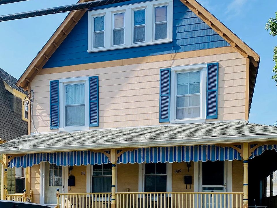An amazing opportunity to own a 3 BR 2 B house at BEACH with an attached 3 BR 2 B rental income property! This is a spacious 2 family, Each side has a full basement & full finished walk up attics for extra sleeping! All wood fls the 2 units are mirror images with the East side a little more finished on 3rd Fl. Each side LR, DR, K, Bath, 2nd fl 3 BRs full bath.w/claw ft tub. 98/East side is rental has been seasonal & is currently annual w/$1500 rent and tenant pays elect, gas/heat & hot water & wifi. Owner uses West side - 98 1/2 address. SELLING COMPLETELY FURNISHED furniture, linens, dishes,, pot & pans & all appliances as is in working condition. North of Main easy access to all OG and Asbury Park activities and NYC train or bus.