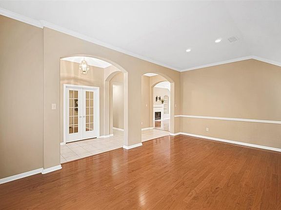 Lovely, well-maintained 1 story home in Brooksedge in the Village of Alden Bridge. Complete with 3 Bedrooms, 2 Full Baths, a Private Study (has a closet, so can be add'l bedroom), Formal Living & Formal Dining. Light & Bright Family Room with Fireplace, built-ins, and a great view of the partially covered wood deck & backyard with new back fence and No Rear Neighbors! Open concept Kitchen and Breakfast with SS appliances including a Refrigerator. Energy-efficient tinted double-paned windows. This one won't last long