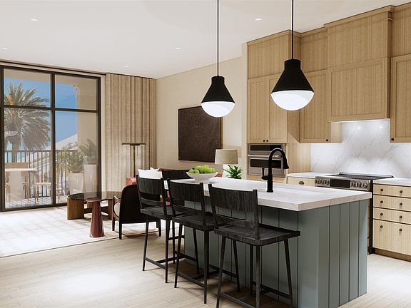 Shaker-style soft-close cabinetryLarge island with seatingFloor-to-ceiling windowsPrivate terraceQuartz slab countertopsGourmet kitchenSpa-inspired bath
