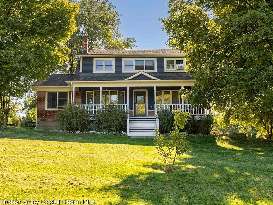 This charming 1900 farmhouse in Highland, New York, offers a comfortable and spacious living space with original wide custom moldings and beautiful oak hardwood flooring. Enjoy the beautiful sunlight in the fully finished sunroom. The kitchen is open with plenty of counter space and new appliances. Large dining area. The primary bedroom is on the first floor with windows facing three sides. enjoy quiet evenings in the cozy living room complete with fireplace. Exterior freshly painted. Two private bedrooms on the second floor. The front porch is covered with beautiful mountain views. Separate 2 car garage is currently set up for one car and workspace. This home is beautifully set on almost an acre with the upstate country feel you are looking for. You will be pleasantly surprised all spring and summer by beautiful perennials. All this plus close to Metro North or the NYS Thruway for easy commuting. Area attractions are all within a few miles.