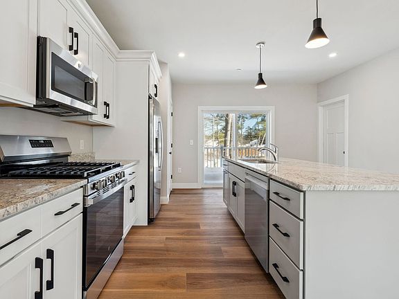 NEW CONSTRUCTION: Now leasing the first phase of Bayberry Commons, Rochester's newest townhome community nestled in a wooded, residential area with close proximity to major routes. Each townhome features three bedrooms, three baths, two car garage, and private deck. The living space is an open flow layout, with a custom kitchen, spacious living room, and either an open dining area or quaint home office. All townhomes feature wide plank flooring throughout, high ceilings, window blinds, and beautiful finishes. Clean and modern kitchens with island seating area, quartz countertops, stainless appliances, pantry storage, and ornamental lighting. Glass sliding doors off the living space leads to a private deck, a serene place to enjoy your morning coffee. The upper level features three bedrooms, including a primary suite with walk-in closet and private bath with walk-in shower and quartz vanity. In-unit laundry hook ups, and full bath and two additional bedrooms on upper floor. Garages for each townhome offer indoor parking for two vehicles, along with additional parking throughout the community. Sidewalk lined streets, and green space throughout for residents to enjoy. Central AC. Pets allowed with approval. Fee's Apply Non-Smoking.