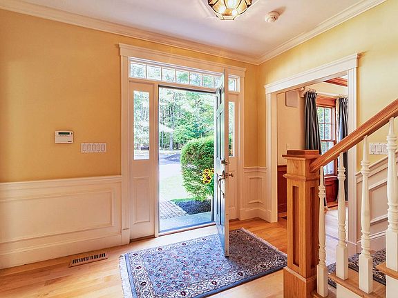 Show stopping property that combines luxury finishes with comfortable everyday living. This spectacular home with hardwood flooring throughout comes complete with four large bedrooms including master with fireplace, over-sized full bath, walk-in closets and large adjoining private office suite. First floor features Family Room with stone fireplace, Eat-in kitchen with granite counters, custom cabinets and built-ins, flowing seamlessly into Sun Room with access to large mahogany deck showcasing scenic wooded views, living room/sitting room area with fireplace and over-sized dining room with custom built-ins and access to private deck, perfect for entertaining. Finished walk-out lower level has family room with fireplace, wet bar, game room, exercise room and full bath. The grounds are professionally landscaped with natural stone walls, Gunite pool with hot tub, pool house, tennis court and sport court. A true Oasis with a back drop of a natures playground with over 15 acres of land!