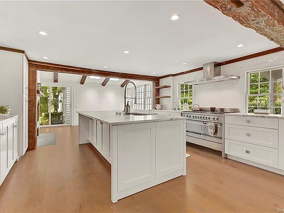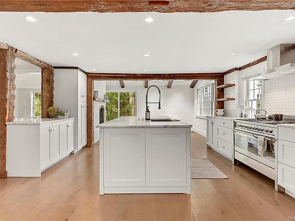 A stunning restoration of one of Bedford s village antiques. Timeless spaces with an urbane aesthetic. Antique floors, nine over six windows, period moldings, exposed beams and white walls. Center Entrance Hall. Beautifully-scaled Living Room with Fireplace. Library with built-ins. Formal Dining Room. Chef s Kitchen with white marble counters, subway tile backsplash and high-end appliances open to Sitting Room with Fireplace. Breakfast Room with doors to covered porch. Private Master Suite with luxurious Bath. Four additional Bedrooms. Separate One-Bedroom Cottage. Nearly one acre with age-old trees, stone walls and level lawns. Antique Barn with four-bay garage and open storage loft. Heart of Bedford!