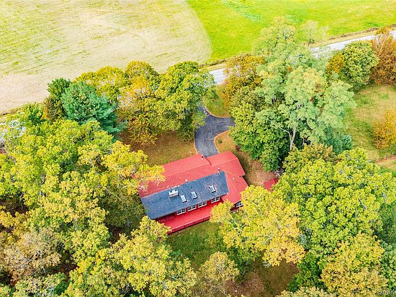 This Rhinebeck Mid-Century modern ranch home is sited on 1.37 acres only minutes from Rhinebeck village and the Rhinecliff train station. Located on Scenic Hudson River Historic River Road and directly across from the 750 acre Creed Ankony farm’s bucolic fields. A well maintained country home with many recent updates such as the roof, furnace, garage doors, back deck, generator hook up etc... This 2246 square foot home features a large living room (with a wood stove) that is open to the dining room, a renovated eat-in kitchen with a fireplace, a sunny library/office room, a spacious sun room with vaulted ceiling & 3 sky lights and glass doors that lead to a 540 foot back deck and a separate laundry room. There are 3 bedrooms and 3 bathrooms with a private primary bedroom suite with a primary bathroom (separate shower & Jacuzzi tub) and 2 walk-in closets, plus 2 bedrooms each with a full bathroom. There is a large two car attached garage and a small barn with electric and a wood stove for storage or a workshop. Ideally located close to the village, hospital, library, train, Bard college and the Kingston/Rhinecliff bridge. This is a perfect weekend retreat or full-time home. Please see virtual 3D floor plan of the home and property.