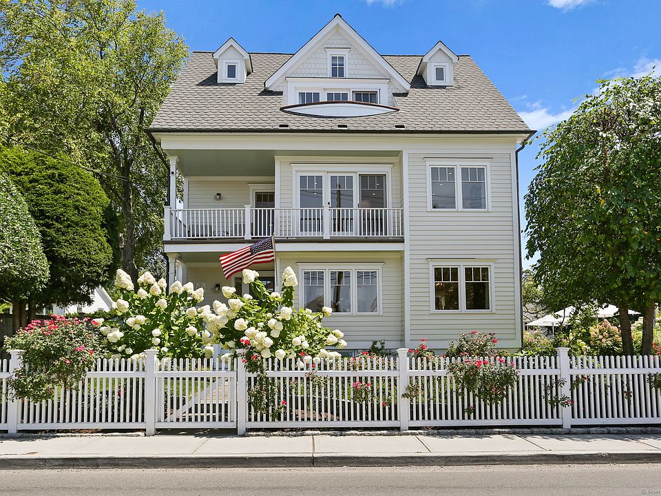 Welcome to 98 Rowayton Ave, in the heart of Rowayton where you can walk to it all! This historic home has been thoughtfully renovated, combining luxury with advanced technology for modern living. The first floor boasts new hardwood floors, a first floor en suite bedroom with radiant heat marble bathroom floors. The gourmet kitchen features Wolf and Sub Zero appliances, heated quartzite countertop, and two Sub Zero wine coolers. Renovations extend to the second and third floors, including a family room with shiplap and a wood burning fireplace, an office, 3 bedrooms and all new bathrooms. A third floor primary suite offers privacy and luxury, with great views of the Five Mile River. The home is equipped with Lutron automated custom drapery and lighting, a Sonos system, and Nest security features. CAT 6 wiring and WiFi extenders ensure seamless connectivity. Outdoors, enjoy a landscaped fenced-in yard with a sprinkler system, outdoor shower, and gas fire pit. Additional highlights include a garage wired for an electric car charger, a 10k kW Generac generator, and an EF-3000 filtration system. Every detail in this home is crafted for comfort and convenience, providing an unparalleled living experience.