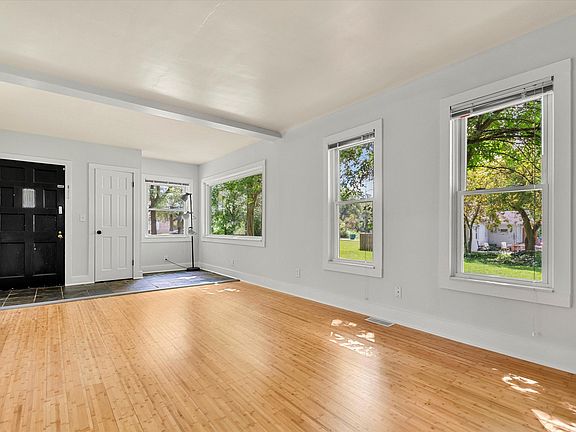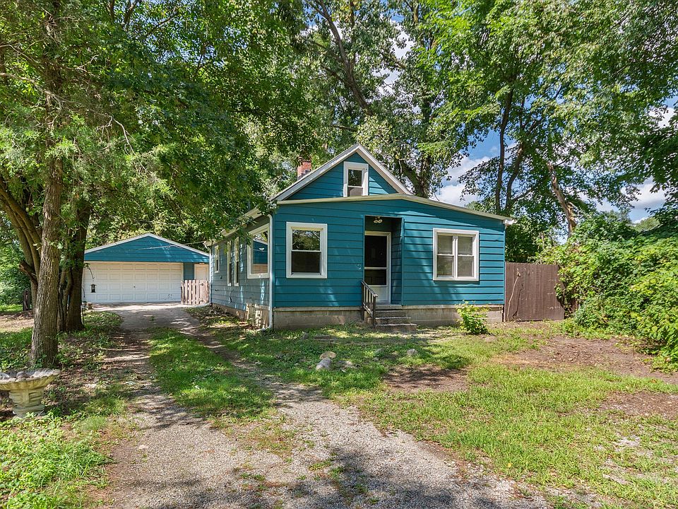 Nearly 1 acre of land surrounds this attractive bungalow, offering space, privacy, and a natural retreat at the end of a quiet cul-de-sac. Bordering a park, the property feels like a secluded paradise, yet it's only minutes from shopping, dining, and all the conveniences of town. Step inside to find refinished bamboo flooring, newer vinyl windows (approx. 5 years old), fresh interior and back doors, and a beautifully updated kitchen and bath that bring a modern touch to the home's charm. With 3 bedrooms, 1 bath, and 940 sq ft, it's thoughtfully designed for comfort and efficiency. Newer appliances, newer A/C, and laundry in the partial basement make daily living a breeze. The oversized 2.5-car garage provides endless potential for hobbies, storage, or workshop space. Outdoors, enjoy mature trees, a fruiting mulberry, and seasonal wild mushrooms, including sought-after morels. Low township taxes add to the appeal of this rare find combining privacy, convenience, and natural beauty!