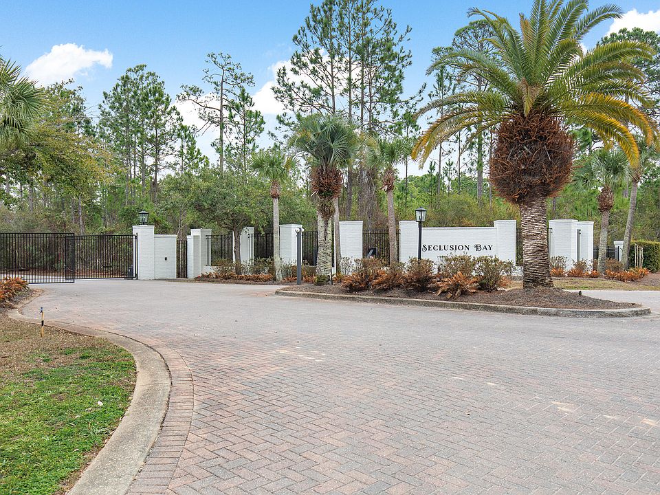 Experience the pinnacle of modern luxury with this elegant one-story residence nestled on a serene, tree-lined street in a highly sought-after gated neighborhood of Seclusion Bay in Santa Rosa Beach, FL. Located in the heart of coveted South Walton and moments from coastal Scenic Highway 30A, this exclusive community offers the best of what the Emerald Coast has to offer! This new-construction property sits on one of the largest lots available in the neighborhood, offering unparalleled comfort, style, and convenience. This 0.91 acre lot offers additional room to build a guest cottage, entertainment/rec space, greenhouse, boat garage, putting green, sport court, the possibilities are endless! A grand iron entry door makes a bold statement as you approach the home, combining timeless elegance with exceptional durability and security. Designed for both relaxation and entertaining, this home features a split bedroom floor plan with a primary suite and three spacious guest rooms. Along with a versatile room just off the grand foyer that can serve as a dining room or office space.