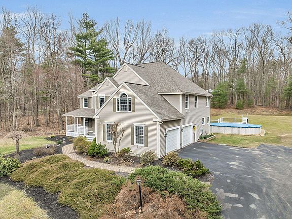 OPEN HOUSES CANCELLED. OFFER ACCEPTED. Welcome home with this meticulously designed custom Atkinson Colonial. Perfectly blending elegant design with functional living spaces, As you enter, you're greeted by an open 2-story foyer with gleaming hardwood floors. To the right a spacious dining room awaits, to the left a formal living room, both offering a perfect backdrop for gatherings & special occasions. Relax & unwind in the oversized family room, featuring a stunning stone fireplace that creates a warm and inviting atmosphere. The large eat-in kitchen boasts granite countertops & cherry wood cabinets. French doors lead you to the bright & cozy sunroom, where you can enjoy your morning coffee or relax with a good book. Venture out onto the oversized composite deck, perfect for summer barbecues. Beyond lies an above-ground pool and a private backyard, providing endless opportunities for outdoor enjoyment. Upstairs, discover 4 spacious bedrooms, including a primary bedroom suite complete with a private bathroom, jacuzzi tub, shower, and walk-in closet. Need a workspace? Your primary bedroom suite also offers an office, perfect for remote work. This home is equipped with central a/c, surround sound, whole-house sprinkler system, irrigation, and spacious basement for storage. The 2-stall extra-wide garage with new doors provides ample space for oversized vehicles. Don't miss the opportunity to make this pristine home your own.