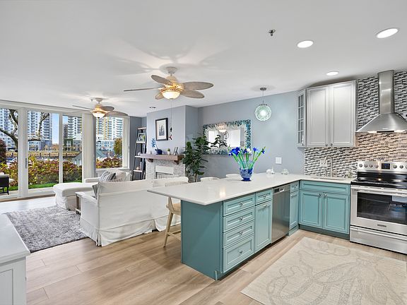 Soak in that 'By the Water' feeling all year long and experience sophisticated waterfront living in this beautifully renovated 1-bedroom corner unit at The Village at Stamford Landing, where every detail has been designed for comfort and style. The expanded, fully renovated kitchen features quartz countertops, stainless steel appliances, abundant cabinetry, and a large pantry-perfect for year round entertaining. The sunlit open living/dining area offers a gas fireplace with a sleek tiled mantle and sliders to your private patio, ideal for morning coffee or evening sunsets overlooking the marina. The spa-inspired bath includes a Kohler heated jacuzzi tub, custom tilework, and a Woodbridge bidet toilet for a touch of luxury. Additional highlights include a new water heater (2022), new living room heating/cooling unit (2022), and 2 garage parking spaces. Enjoy resort-style amenities including a pool, hot tub, beautifully landscaped grounds, a community dog run and waterfront boardwalk connecting you to Harbor Point's vibrant restaurants, parks, bars, and shops. Minutes to Metro-North, Downtown Stamford, Old Greenwich, and I-95, this is effortless coastal living at its best-stylish, convenient, and move-in ready.