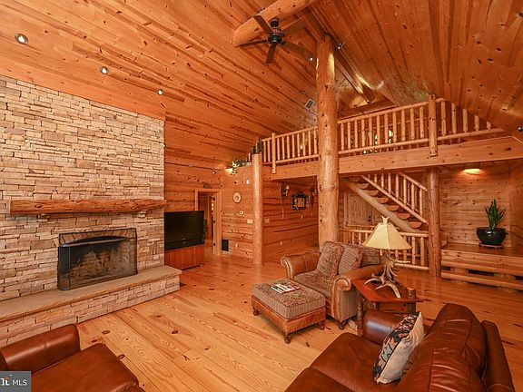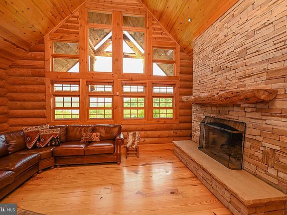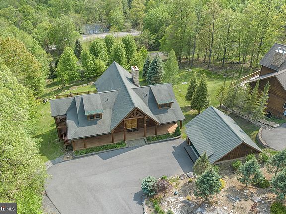 Nestled between rolling mountains boasting dramatic views of Deep Creek Lake and the Appalachian Mountain range, you have found your log home lodge escape. Write the next chapter of your life from this custom log home lodge with sweeping four-season views from pretty much every room, patio, and balcony. Open floor plan, four bedrooms with two primary suites, vaulted ceilings, two stone wood burning fireplaces, detached garage, and has never been rented.