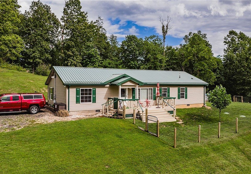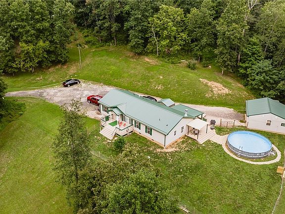 A beautiful & newly remodeled 3 bedroom 2 full bath home sitting on 7.6 acres, close enough to 68 and town, yet far enough away for a peaceful and quiet retreat year round. The driveway alone allows you to feel like you are entering a lush part of WV paradise with large space for a multitude of vehicles. This home boasts a magnitude of new features from new metal roofing, a brand new kitchen from floor to ceiling, new flooring throughout the entire home, fresh paint, and new mechanics such as hot water tank, furnace, and a Bosch air conditioning unit. With an open concept floor plan everyone is sure to enjoy the beauty this home has to offer in every direction. A large front porch overlooks a beautiful yard and wooded scenery while a back deck leads out to the above ground pool. Don't forget to check out the 3 season recreational room that has plenty of space for fun indoor activities year round. The garage boasts a workshop and one full size stall, with an exterior covered space for mowers and outdoor riders. A brand new shed, provides even more storage space. Electric available in both. There is also a well maintained goat barn. Want to fill it with goats? There are two separate fenced in areas to be able to do so. You can also meander down the walking trail(s) and down to the creek to find all of the wildlife that roam here. There's also a "hot spot" for hunting. Drone footage is available on request. Don't let this WV wonderland pass you by, book your showing today!