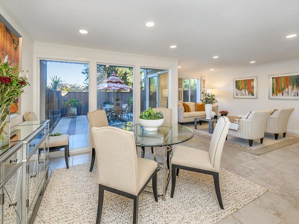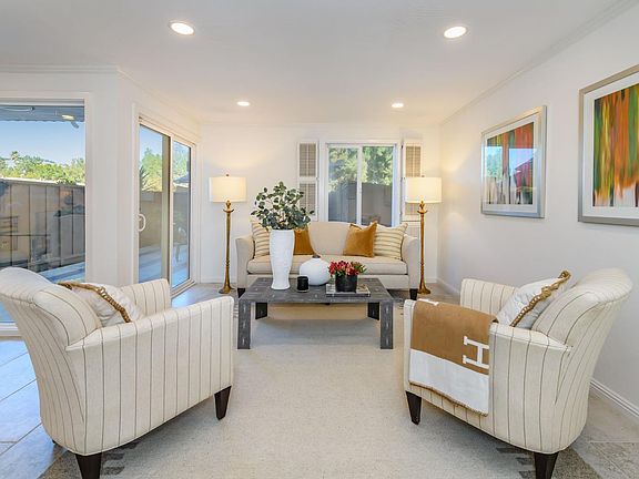 Set within the serene and peaceful Meadows of Terra Linda community, this charming home embodies the essence of a true country club lifestyle. This highly desirable lower-level pristine residence has been tastefully updated with beautiful Italian stone flooring throughout (including the bedrooms), double-pane windows and sliding doors, recessed lighting, fresh paint, and has expansive walls for showcasing art, air conditioning, and a spacious secluded patio. The bright updated kitchen has modern countertops, upgraded cabinetry, stylish hardware, and a useful larder designed for effortless cooking. Just off the kitchen, the dining area opens to a covered patio ideal for alfresco dining- as well as a larger patio area for additional outdoor enjoyment and entertainment. The primary suite features tall windows, three closets, a large dressing area, dual sinks, and a walk-in shower. The sunny backyard has stone pavers, two generously sized storage sheds, and a private gate that opens to a wonderful winding path that flows through the park-like grounds of this 20+ acre community and connects to the property's community club house which offers two large entertaining rooms, three pools, two tennis courts, and dedicated men's and women's saunas- an ideal setting for relaxing, playing, fitness, or simply soaking up the sun in what is arguably the best weather in all of Marin. Additional features include assigned off-street covered parking for one car, plus 19 on-site EV charging stations, plentiful guest parking, multiple on-site laundry facilities, and bicycle storage. Conveniently located to shopping, dining, hiking, biking, Marin County Open Space and trails, Kaiser Hospital, high-ranking schools, lively Downtown San Rafael and Hwy 101. This truly feels like a breath of fresh air to come home to.