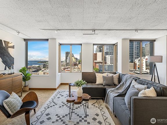 Some terraces just check a box—this one steals the show. A rare west-facing studio with an expansive, wraparound deck complete with water, power, and dreamy views. Slide open either set of doors and step into your private sky lounge, where the views of Elliott Bay, the Olympics, and Seattle’s waterfront are breathtaking both day and night. Inside, floor-to-ceiling windows, A/C, in-unit laundry, clever built-ins, and a sleek European-style bath. All in a coveted concrete-and-steel building just steps from Pike Place Market. Parking and storage included. City living, elevated.