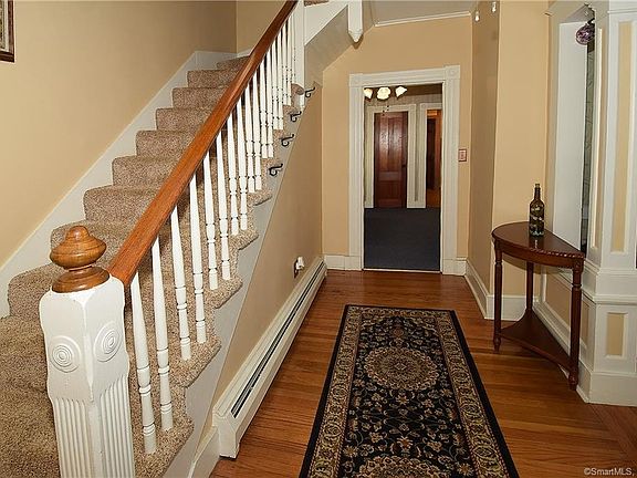 Charming Victorian in beautiful condition. Pride of ownership shows inside and outside. Easy care vinyl siding and newer windows. Gleaming hardwood floors on first level.Updated kitchen overlooks manicured rear deck and yard. Four bedrooms and one full baths on second level. First floor has living room, kitchen dinning room plus a den and full bath. Large fenced in yard with gates to separate areas. 2 car garage to keep you car in and plenty of storage. Many updates to this home over the years. Find your own oasis in Rockville.