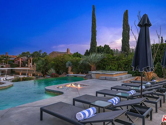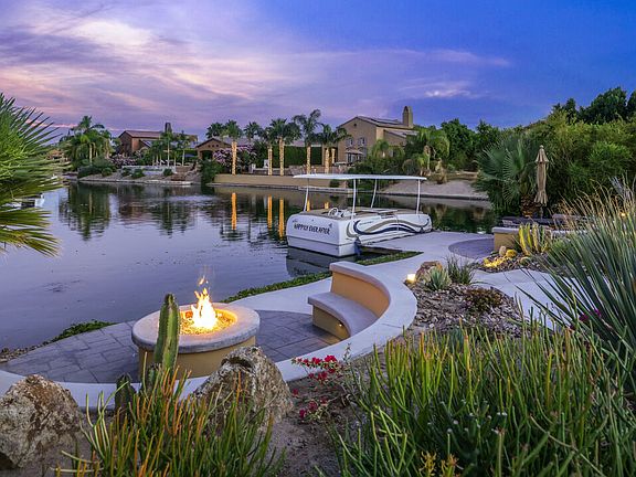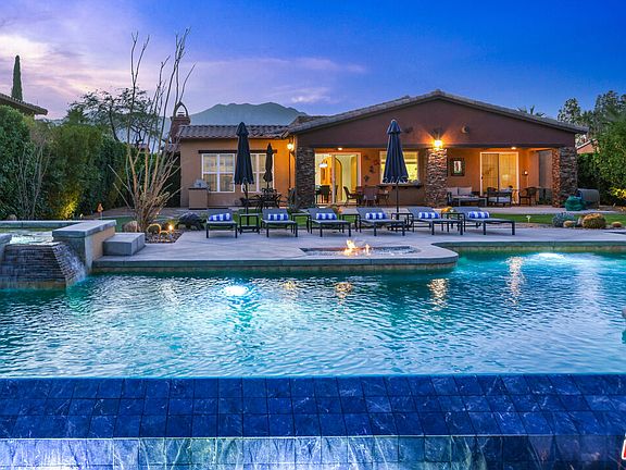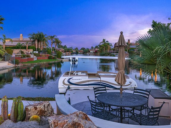 Celebrate holidays in Luxury on the Lake in exclusive gated community of Santo Tomas in Rancho Mirage. This lakefront private resort luxury home offers unobstructed lake and mountain Views. The home is recently upgraded with no detail overlooked. A new kitchen with quartz countertops, a farmhouse sink, stainless steel gas cooktop, and a large island, plus a breakfast/living area all overlooking the Lake & backyard. All bedrooms have new wall mounted flatscreen TV's, new porcelain tile wood floors, new furniture and LR with gas fireplace. Lakefront entertainment area with a dining area, gas firepit with built-in seating, and a cantilevered concrete dock to launch your paddleboard, canoe, or kayak. A covered Lakeview porch to eat or relax as there is an island stainless steel barbeque next to a 3-hole putting green. Swim in a newer Pebble-Tec pool with a stacked stone waterfall spa and beach entry. Close to all great shopping, restaurants, Agua Caliente Casino, The River, and El Paseo.