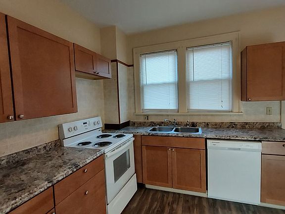 Kitchen with refrigerator, dishwasher, garbage disposal, and electric range