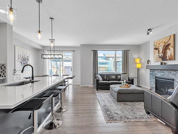 Located in the vibrant, growing community of Livingston, just steps from Livingston Park and within walking distance of numerous amenities is this immaculately kept 4 bedroom, 3.5 bathroom, modern 2 storey home with bright, open floor plan, double attached garage and developed basement!! Entering the home, you're greeted into a spacious foyer. The functional main floor layout offers a discrete powder room set apart from the main living areas, a large mud room off the garage with a walk-through pantry that leads into the kitchen, and an open-concept living, kitchen and dining area overlooking the back yard. The kitchen is the heart of the home, featuring a large island with room for seating, stainless steel appliances, stone counters and ample storage with soft-close cabinets and drawers. The living room is anchored by a cozy gas fireplace and offers large windows for an abundance of natural light. Upstairs, you'll find a large primary bedroom with spacious ensuite and walk-in closet. The ensuite features dual sinks, a soaker tub and separate shower, and a private water closet. Down the hall is a versatile den/office space, two additional bedrooms, a full bathroom and convenient upper laundry room. You'll also appreciate the open bonus room on this floor. The basement is developed with a family room and large bedroom with walk-in closet and private ensuite. Enjoy the rear deck, complete with BBQ gas line, and the fully-fenced yard for the kids and pets! With central air conditioning to keep you comfortable on hot summer days and a complete fire suppression system for added peace of mind, this is the perfect family home.